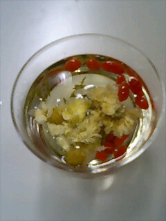 三徳茶は菊花と枸杞子(クコの実)の入った中国緑茶。