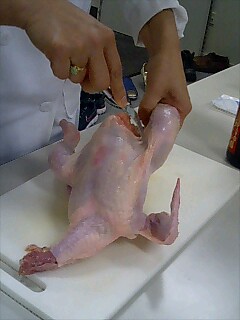 フォークで鶏の皮に穴をたくさんあけて、